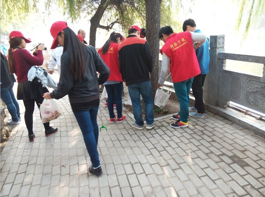 10月26日,是河南省第十七个环卫工人节。上午9时,Beat365官网青协志愿者们联合许昌市其它单位在火车站广场开展“我当马路天使1小时”活动。