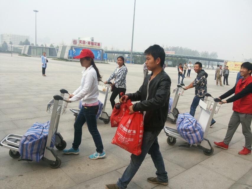 上午8:30,志愿者们到达目的地——许昌高铁东站。大家到达后和火车站工作人员进行接洽,将全部志愿者分为三队开展活动。其中一队到汽车站出站口开展服务,其余两队到高铁出站口等待结束旅程的旅客。等到有旅客下车的时候,我们的志愿者就会向他们微笑致意,并亲切的去询问他们是否需要帮助,需要帮助的我们会把他们拿的行李包和重物发在我们的推车上,推到他们指定的地点,同时和旅客做热情的交流,给他们说下许昌的美丽,等把东西推到他们指定的地点后,我们的志愿者微笑着给他们说再见。