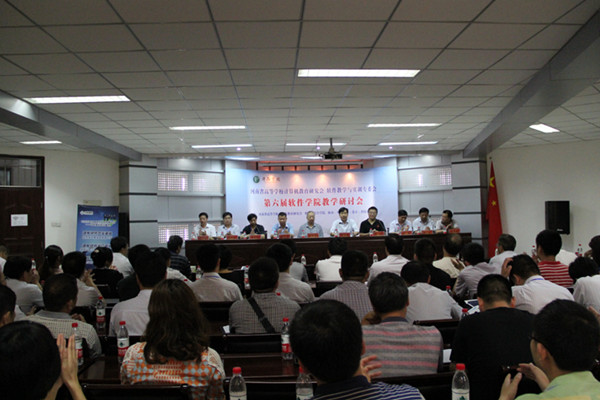 7月6日上午,由河南省高等学校计算机教育研究会主办、我校承办的第六届软件学院教学研讨会在我校办公楼第三会议室召开。我校院长陈建国、副院长张建军,河南省高等学校计算机教育研究会理事长段银田、常务副理事长甘勇,北京软件行业协会执行会长、北京航空航天大学软件学院院长孙伟,河南省高等学校计算机教育研究会副秘书长李学相,软件教学专委会秘书长李占波,我校教务处处长高新战,软件教学专委会副主任车战斌、刘黎明出席会议。来自全省36所高校、12家企业的150余名代表参加研讨会。大会由河南省高等学校计算机教育研究会副理事长、软件教学专委会主任王世卿主持。