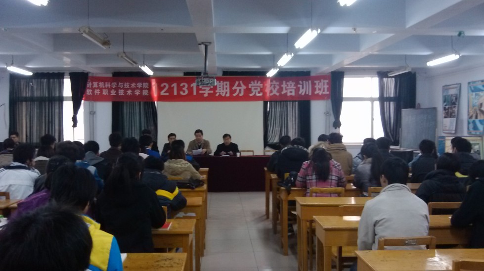 2012年11月30日下午,计算机科学与技术学院(软件职业技术学院)12131学期分党校培训班开班典礼在计算机实验楼311报告厅隆重举行。院特聘党建组织员侯国彦、院党总支书记(分党校校长)郭超峰、院长张志立、院党总支副书记(分党校副校长)翟广辉、院团总支书记(分党校秘书长)梁衡以及受训的全部81名学员参加了开班典礼。开班典礼由分党校秘书长梁衡主持。