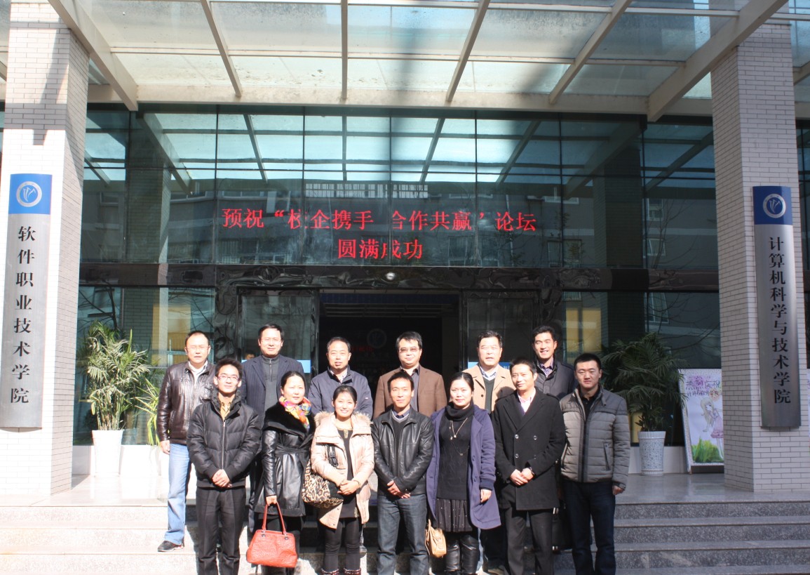 论坛会结束后,校企双方代表在计科楼前合影留念,并一同参观了学院的实验室。