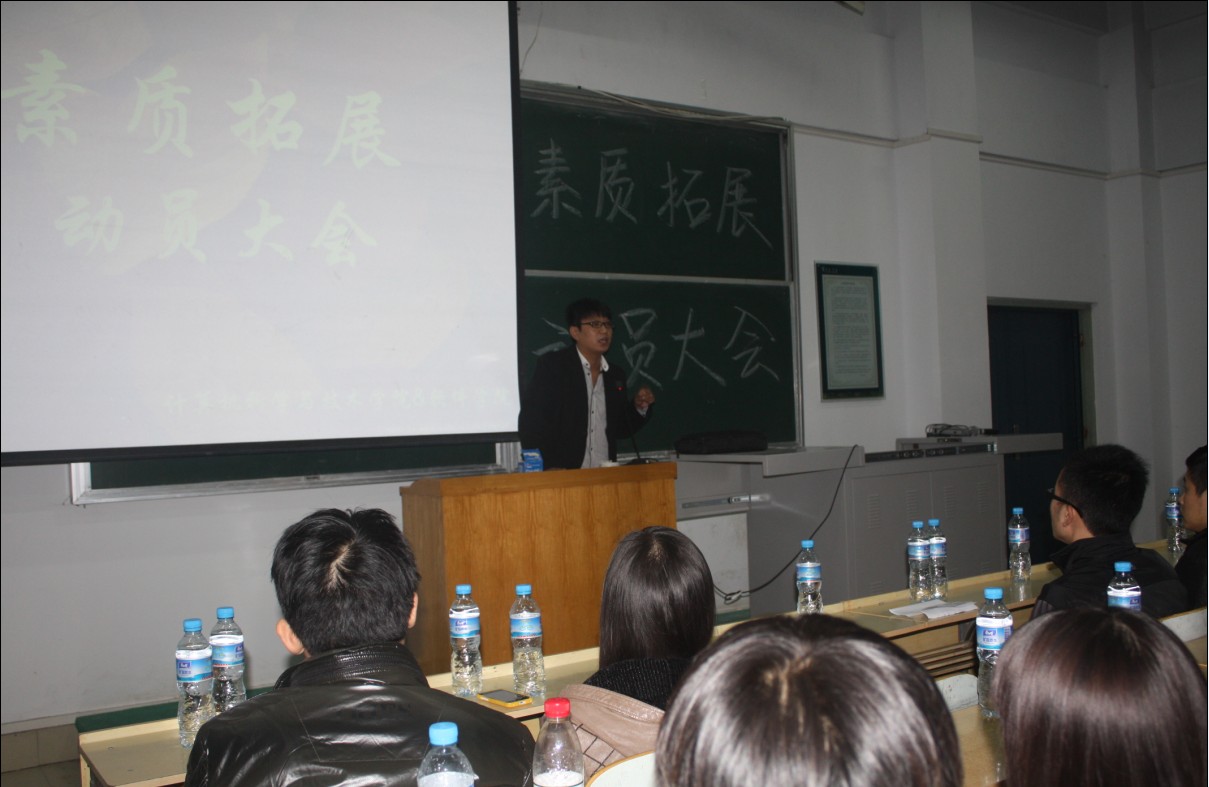 11月2日晚,计算机科学与技术学院&软件学院在B合四成功举办素质拓展动员大会。Beat365官网团总支书记梁衡、12级辅导员李雨娟、刘子源、学生会主席裴新华以及学生会干部出席了动员大会。参加此次素质拓展Beat365官网大一、大二近三百名学生齐聚一堂参与动员大会。