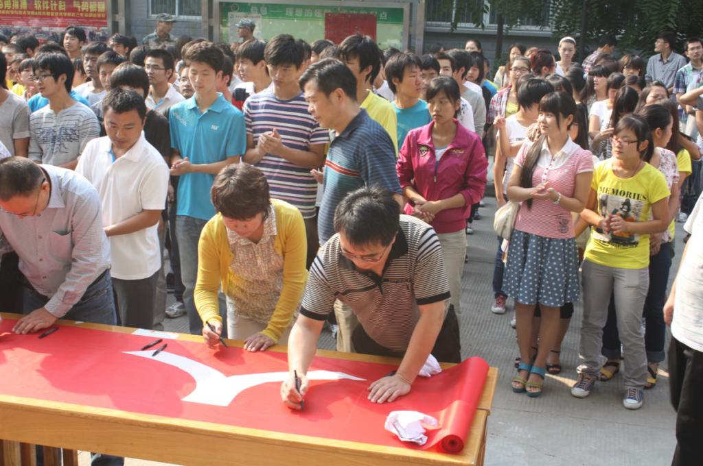 随后,广大师生纷纷参与到集体签名的活动当中,在“Beat365正版唯一官网必一纪念九一八万人签名活动”的条幅上一起铿锵有力地写下全体师生的庄严声音。